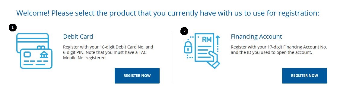 Anda boleh daftar MBSB journey atau MJourney melalui 2 pilihan. Pertama Anda boleh mendaftar menggunakan debit card dan yang kedua menggunakan Financing Account.