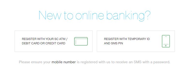 - Klik Register with your sc ATM/Debit card or credit card.
