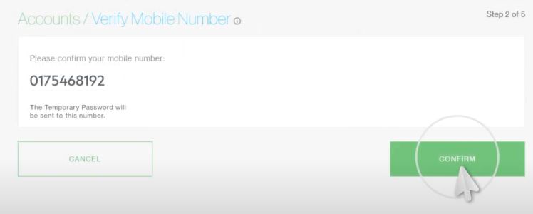 - Klik Confirm bahawa nombor handphone tersebut milik Anda bagi memastikan Anda berhasil menerima kata laluan sementara.