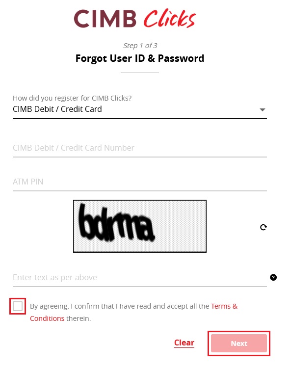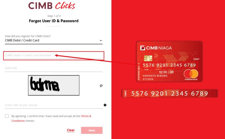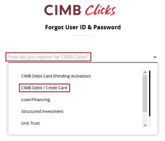 - How did you register for CIMB Clicks? Pilih CIMB ATM/Debit/Credit Card.
