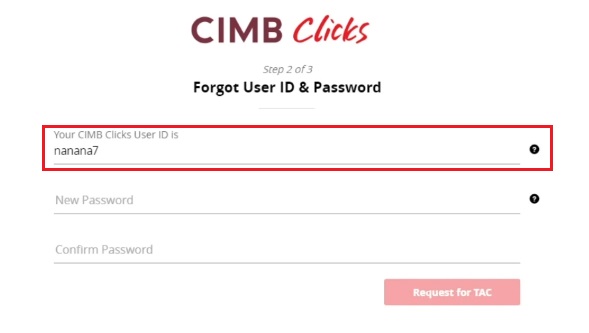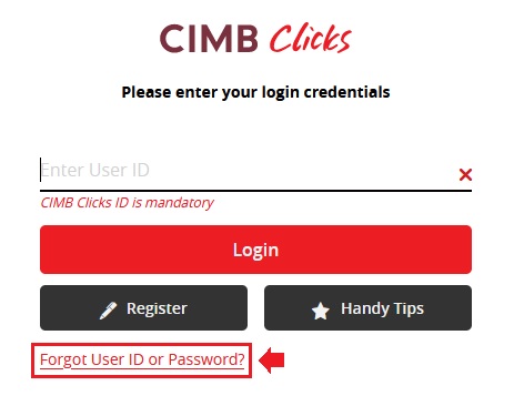 Sila ikuti langkah di bawah ini untuk dapatkan semula User ID dan Password CIMB Clicks Anda.